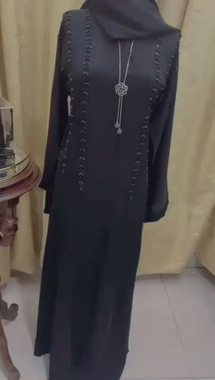Black Beaded Abaya with Hijab Set